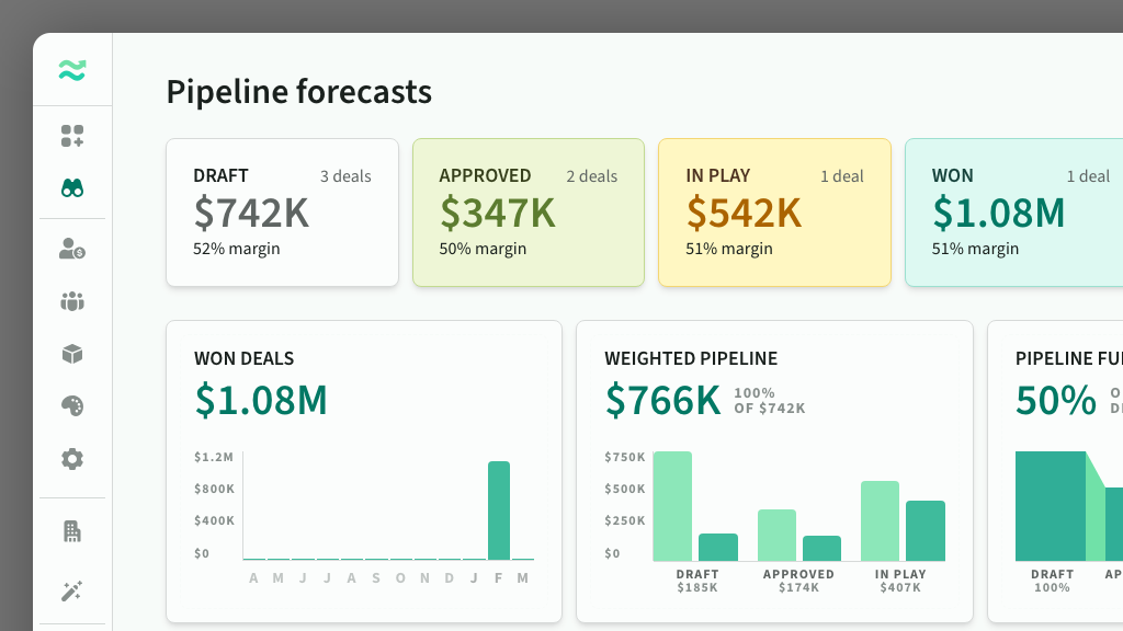 A personal inbox for tracking your assigned tasks and comment activity, plus activity feeds showing what's changed across your space and deals.