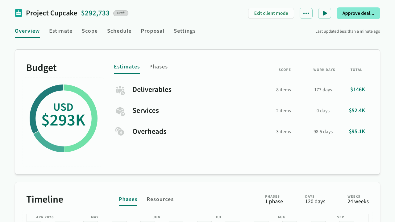 - Navigation outside of the deal is disabled to prevent you accidentally opening your pipeline or rate card in front of clients