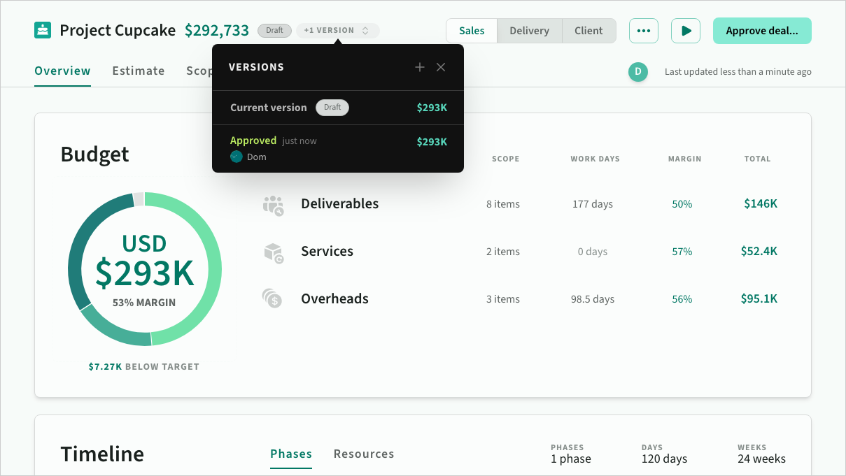 Note: The versions dropdown only appears when a deal contains more than one version.