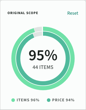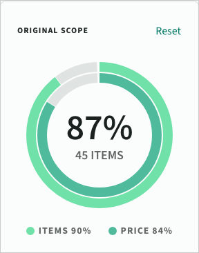 Each item within a breakdown displays the ratio of total value to scoped value, along with its relative size within that breakdown. Descoped items are clearly marked in grey, helping you quickly identify what has been excluded. Items are sorted in descending order by price, making it easier to prioritise high-value components.