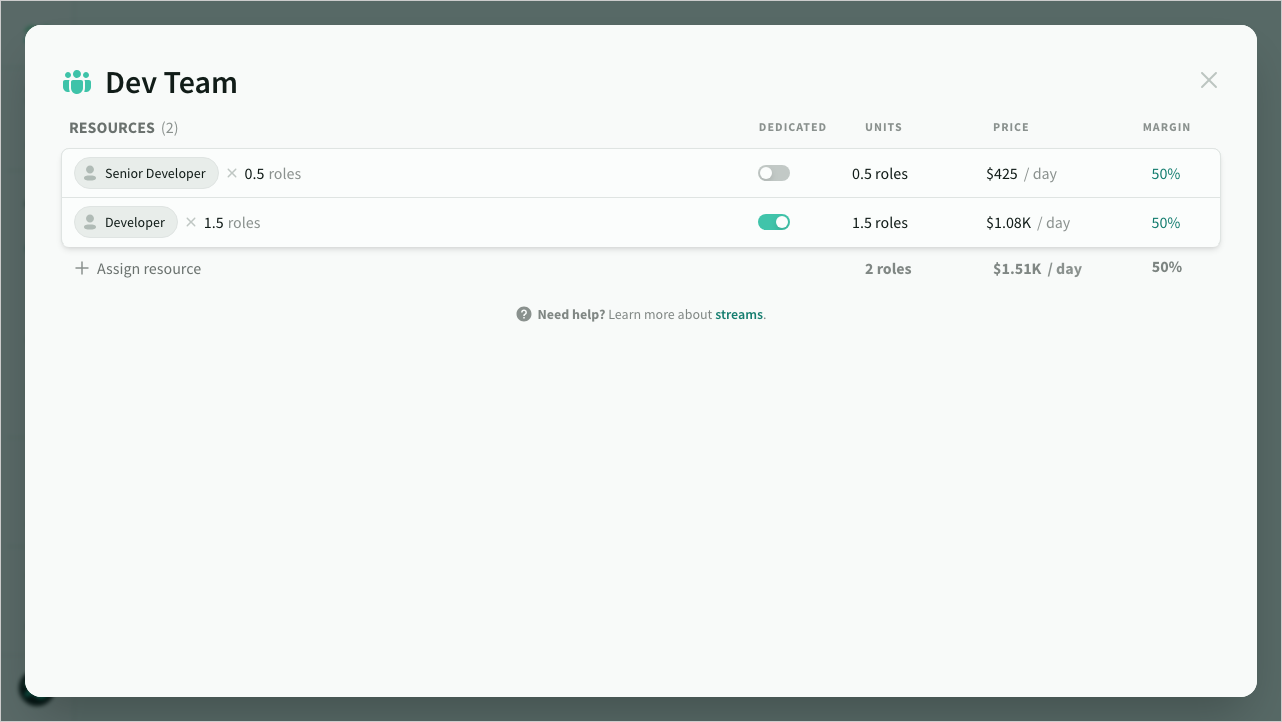 Every Deal has an active rate card that determines the price (and margin) of roles and time-based estimates in that deal. Business and enterprise customers can change the active Rate Card within a deal (or phase) to recalculate the overall price and profitability