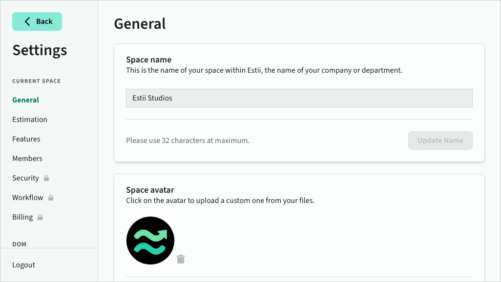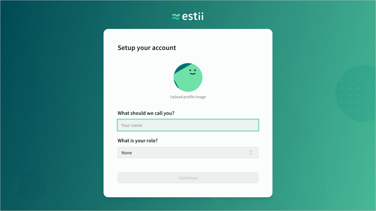 The first time you sign up or view an invite to Estii, you will be prompted to set up your user profile (which is shared across all your spaces) and either create or join a space. These settings can be accessed later in Settings > General.