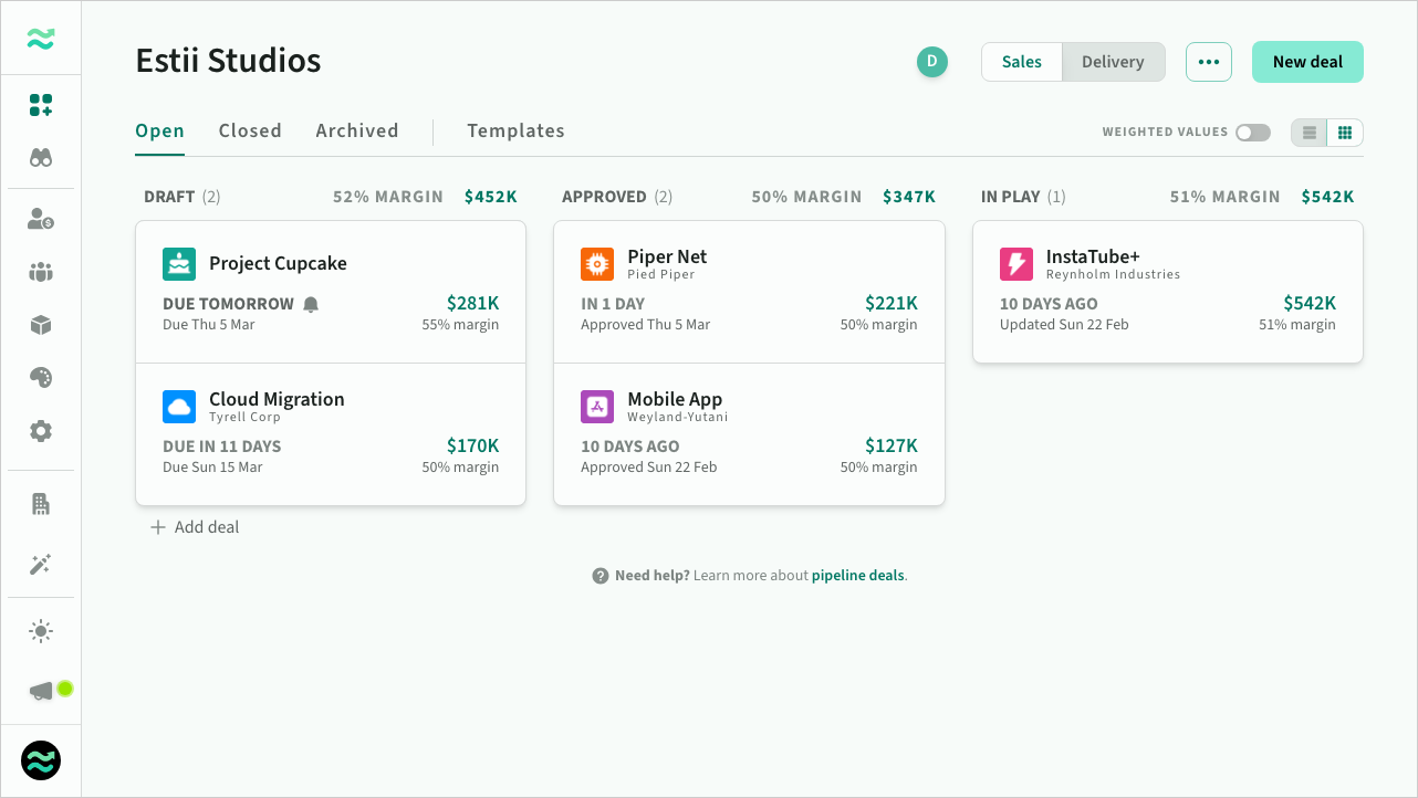 The pipeline is the heart of your space, and the central dashboard for all your deals.