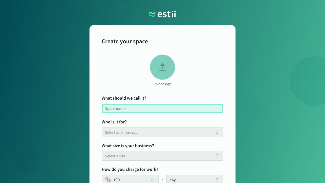 Customise your profileIf creating a new space, enter a name, avatar and other details. You can also select a currency and rate (daily or hourly)