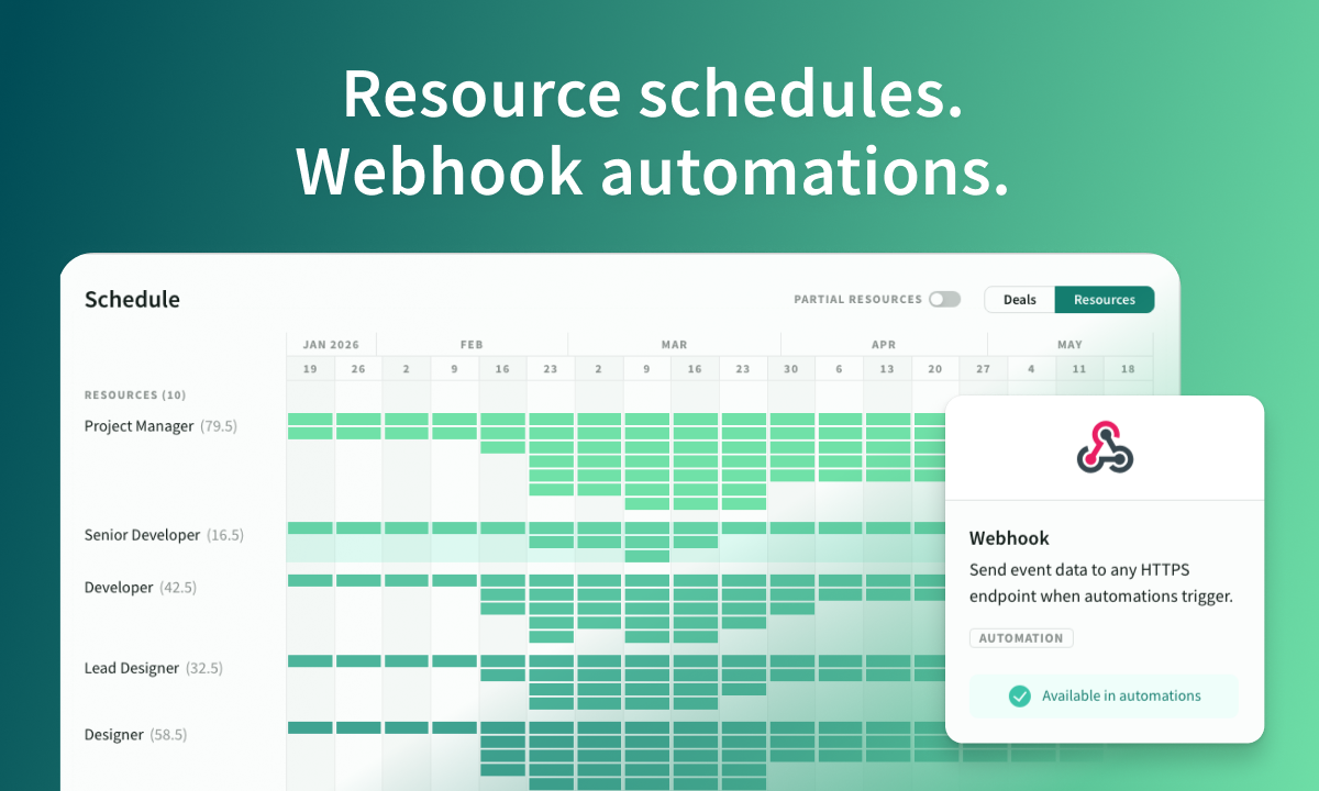 Forecast resource schedules, webhook integrations, and behind-the-scenes improvements