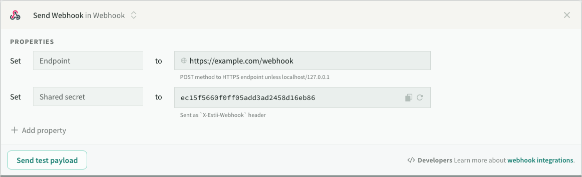 We've added a new webhooks integration (Enterprise only) that lets you send event data to your own endpoints using the Send Webhook action.
