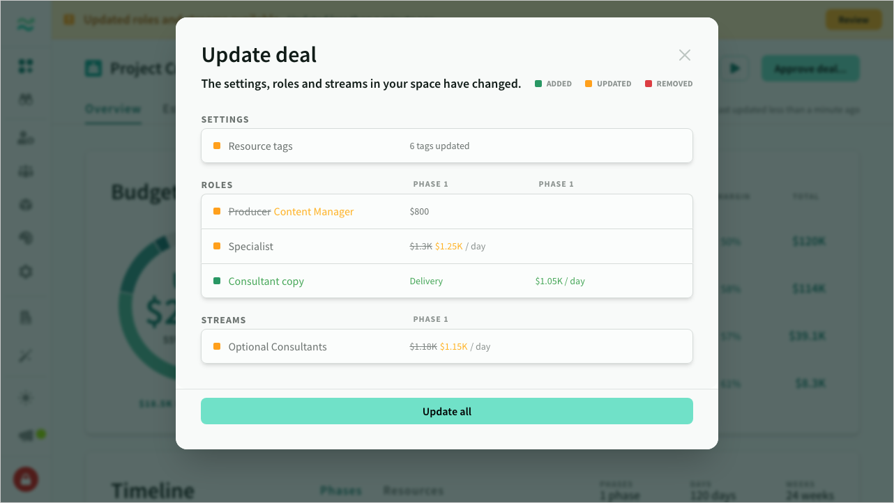We’ve made a bunch of improvements to the update deal dialog - specifically for streams