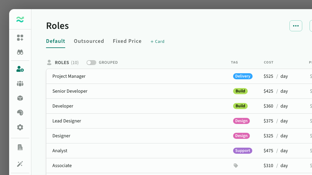 Rate Cards are a specific set of rates (cost, price, margin) for all your roles, targeted to a specific region or cost centre.