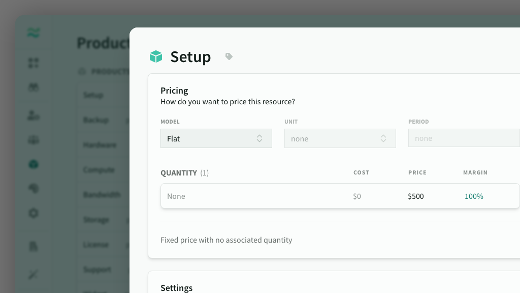 A Product is unit-based resource that can be used to estimate recurring services or one-off expenses.