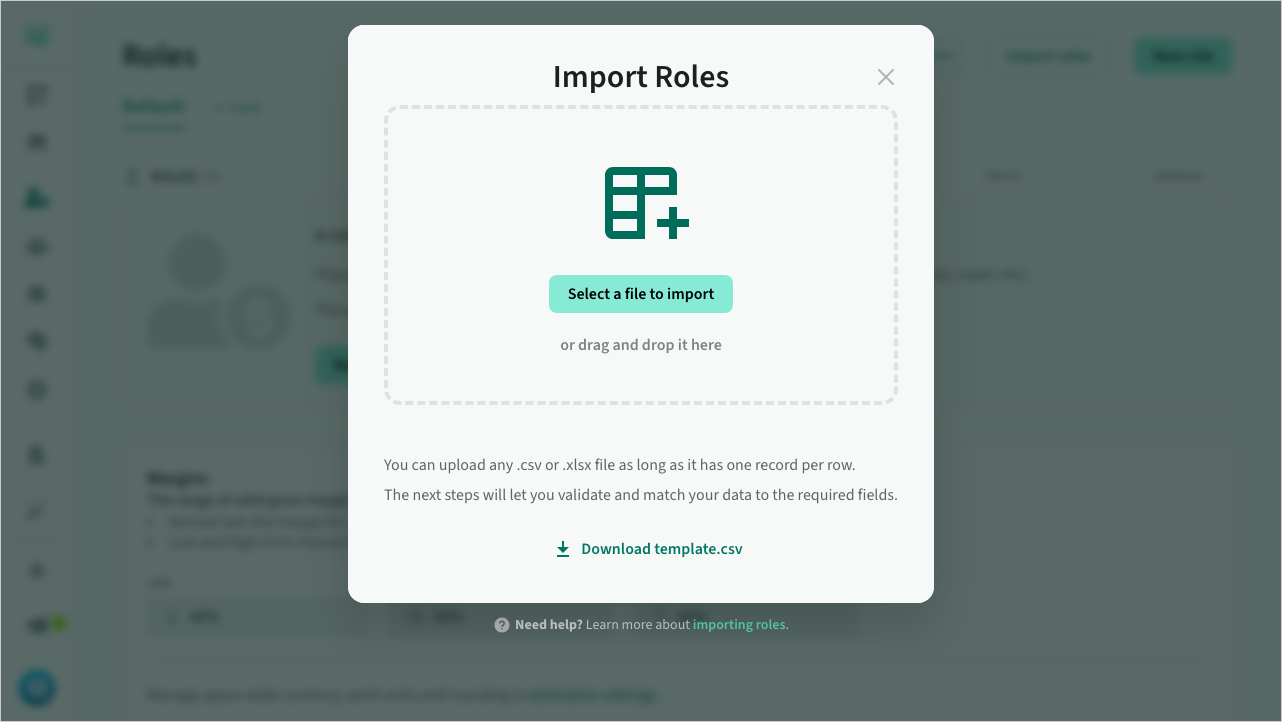 Easily import roles and rate cards from any spreadsheet or csv format