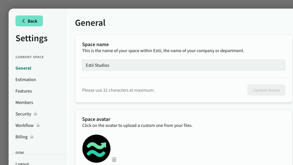 In Space > Settings > General settings, you can update the space name, avatar and other details.