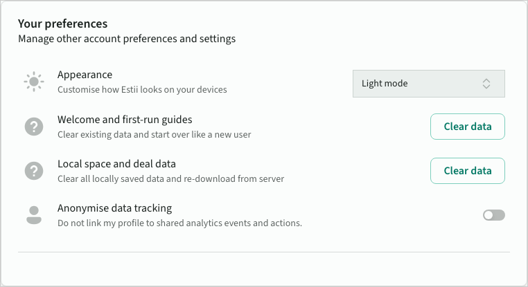 Customise your personal Estii experience and settings