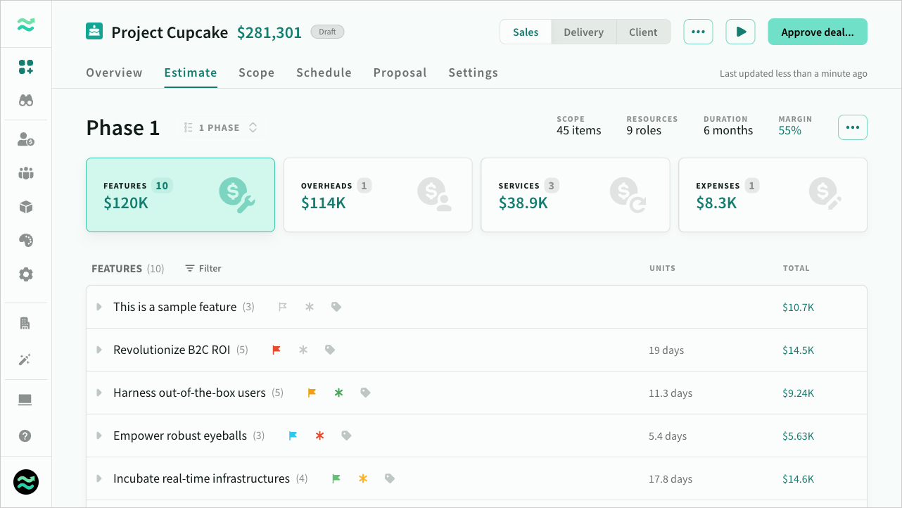 As you improve your resources and settings (roles, streams, products, capacity, contingency), you need a controlled way to update existing deals.